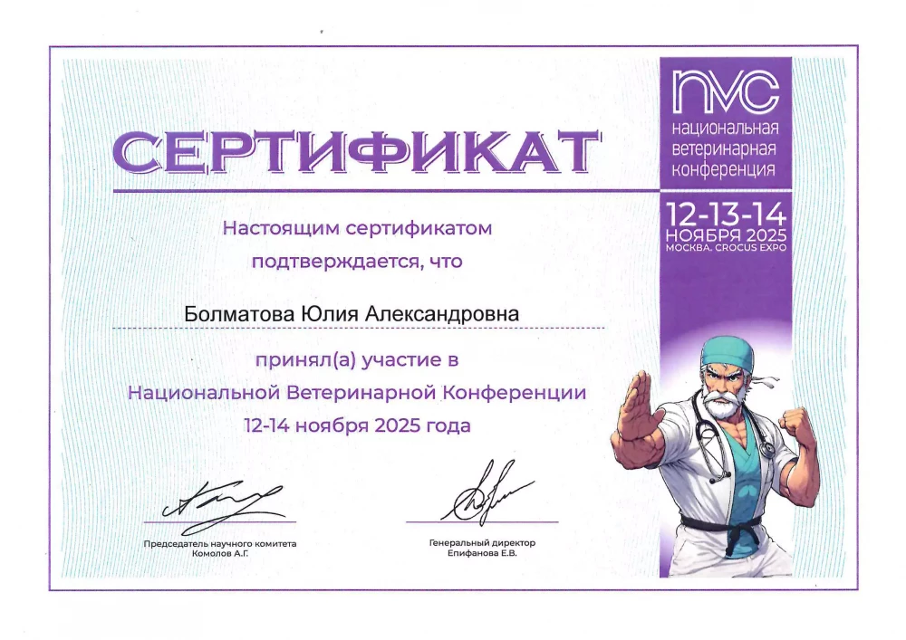 Сейчас набираюсь опыта в работе с питомцами и общению с владельцами, принимаю участие в ветеринарных конференциях, а также прохожу обучение в онлайн формате.